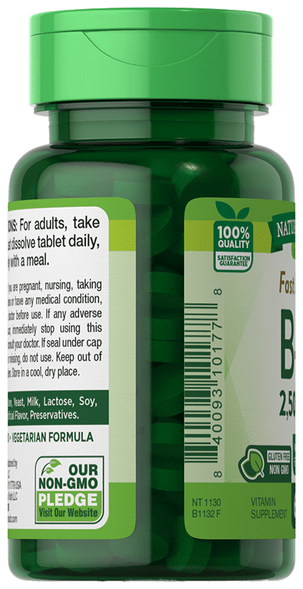Nature’s Truth Fast Dissolve B-12 plus Folic Acid 2,500 mcg Natural Berry Flavor – 60 Tablets