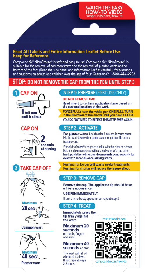 Compound W NitroFreeze is intended for over-the-counter treatment of common warts and plantar warts in adults and children four years of age or older