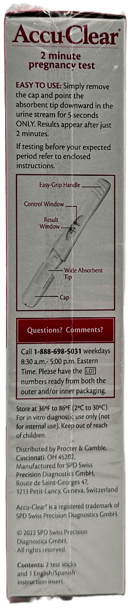 Accu-Clear Pregnancy Test – 2 Test Sticks