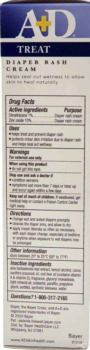A+D Treat – Diaper Rash Cream with Dimethicone + Zinc Oxide – 4 OZ